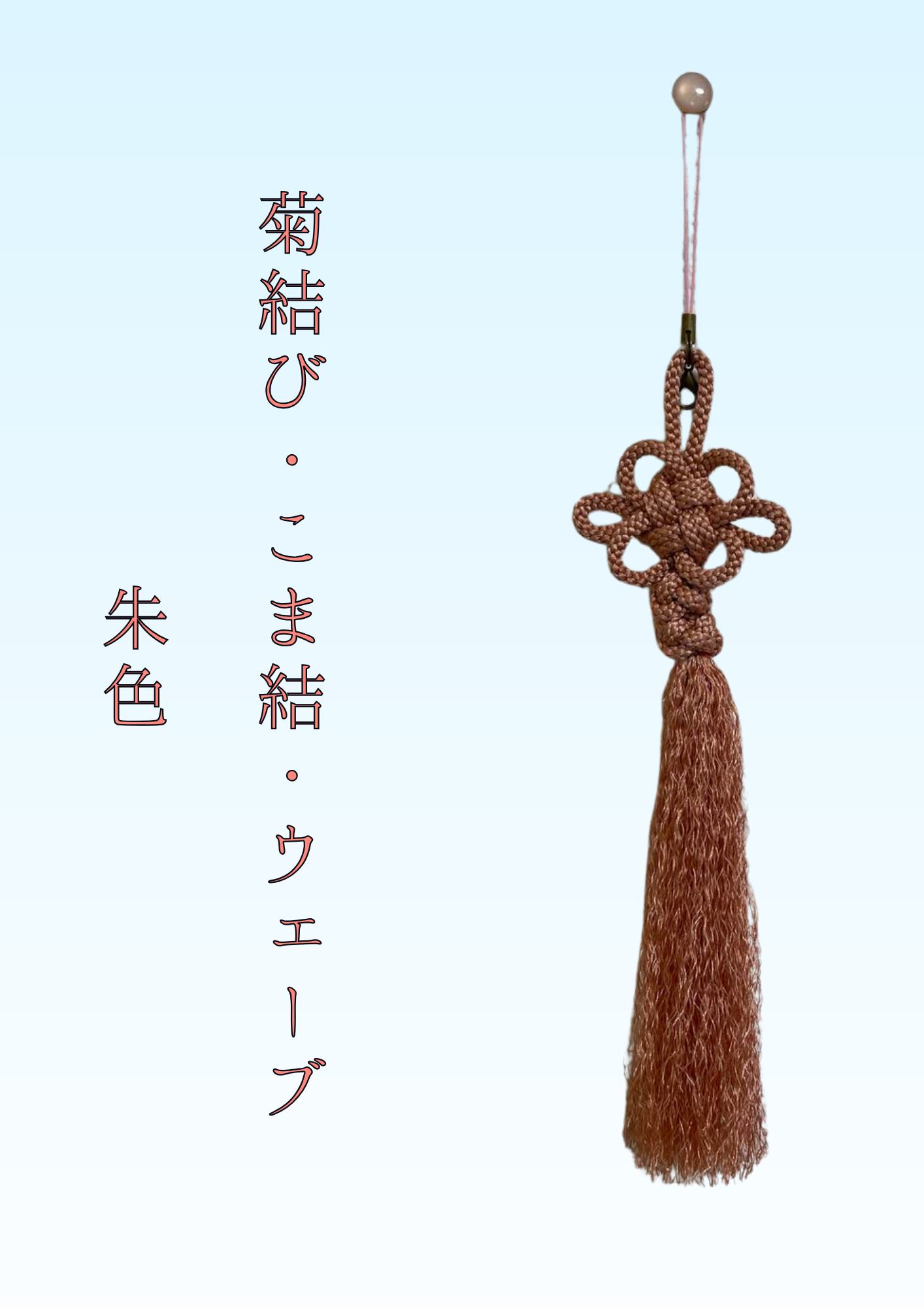 「結び・タッセル オーダーメイド」は、日本結び創り専用の紐を使用し、心を込めてお作りします。菊結びやコマ結びを駆使したこのタッセルは、鞄や携帯ケースなどに付けることで、他の人にはない特別なアクセサリーとなります。