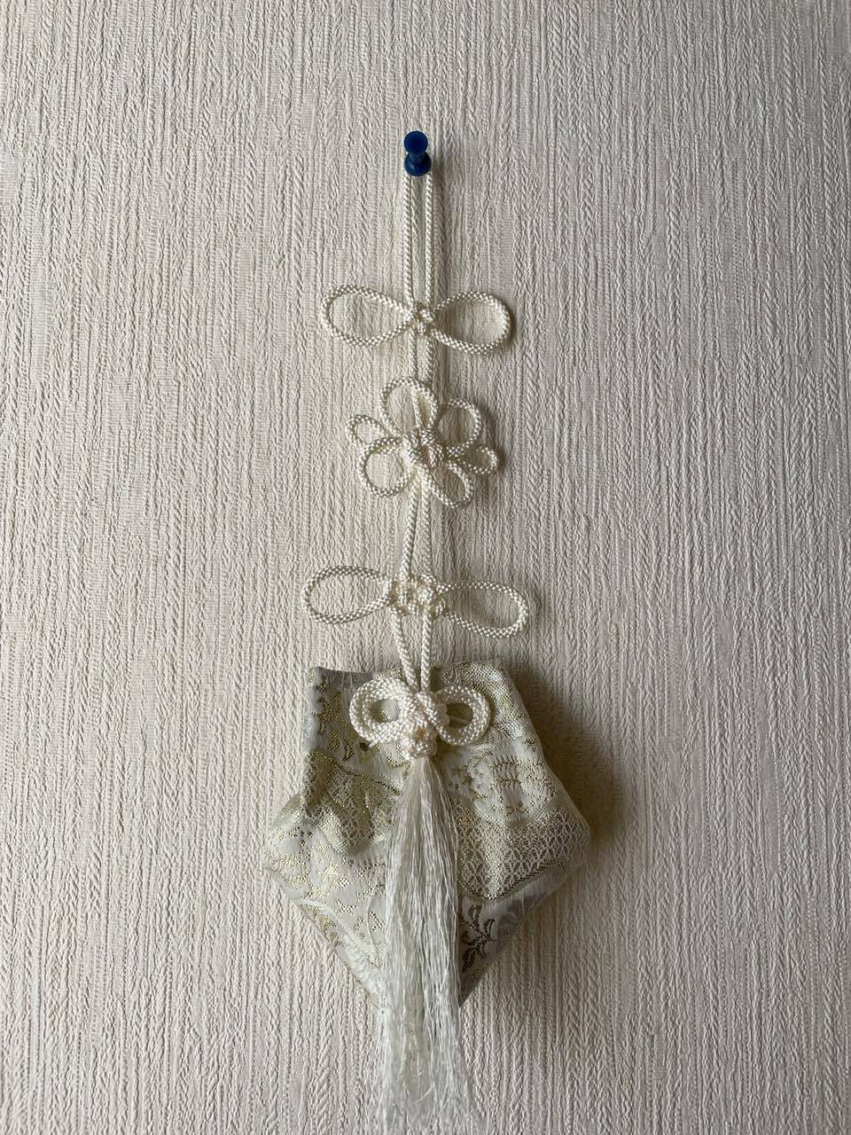 「柯莉勒(中)」は、金蘭の美しい袋仕上げで、ダイナミックな日本結びの技法を駆使しています。几帳結び、菊結び、淡路結び、そしてお守り結びといった縁起の良い結びを取り入れたことで、心を込めた特別な贈り物としても最適です。